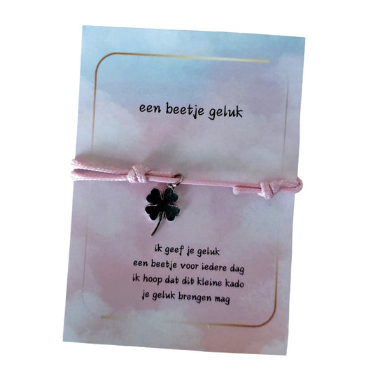 Gelukskaartje met een geluksarmbandje klavertje 4