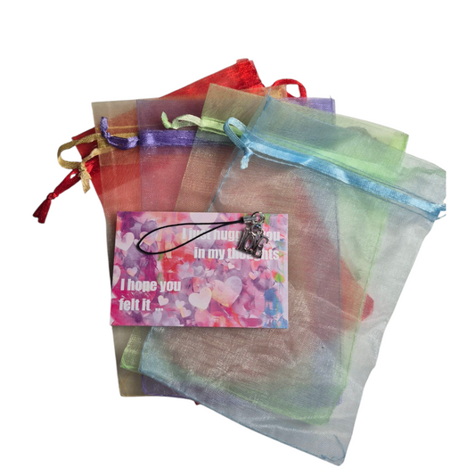 Kaartje 'I just hugged you in my thoughts' met bedeltje love