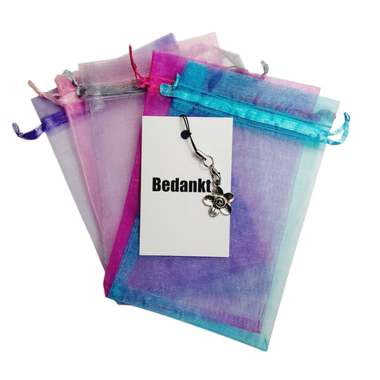 Gelukszakje bedankt - organza zakje met kaartje en klavertje