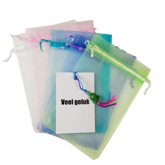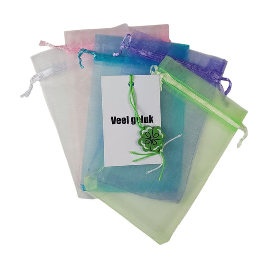 Kaartjes met een beetje geluk. Exclusief verkrijgbaar in onze shop. Kaartjes met een gelukssymbool. Leuk om uit te delen, als afscheidskadootje of zomaar .... Ieder kaartje heeft een speciale boodschap en een gelukssymbool en kunt u direct weggeven. U kunt deze gelukskaartjes ook met een leuk organza zakje kopen.