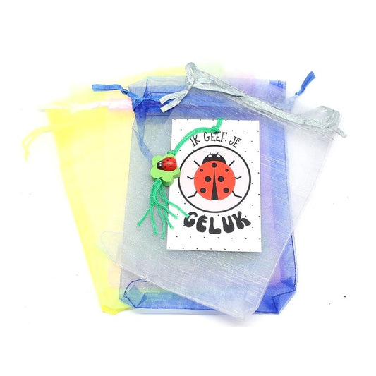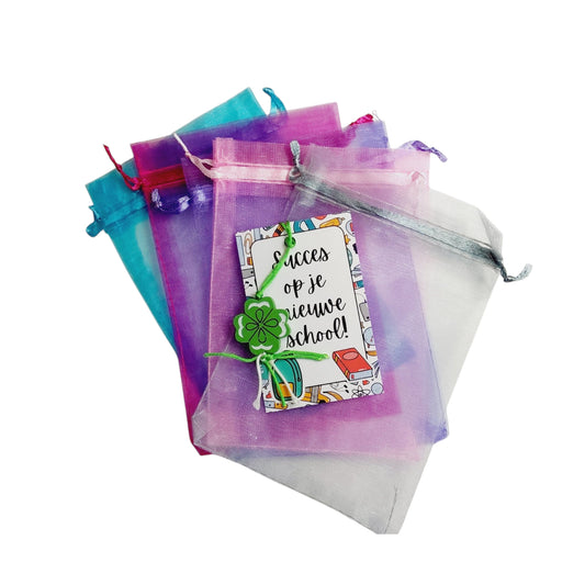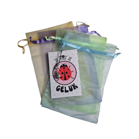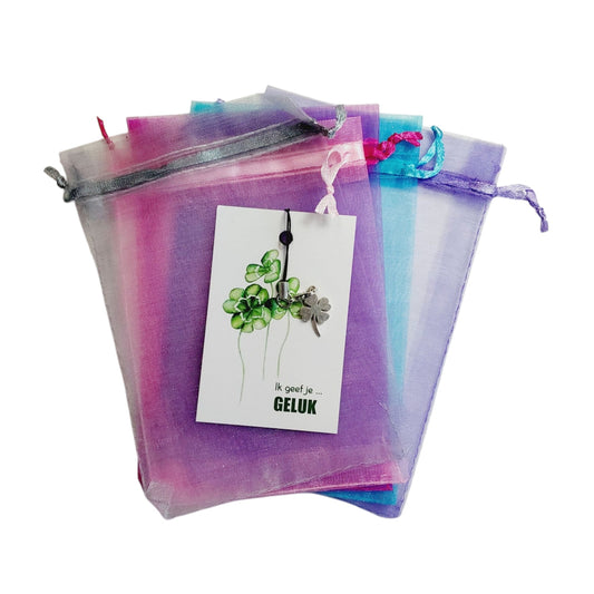 Gelukszakje bedankt - organza zakje met kaartje en klavertje