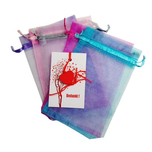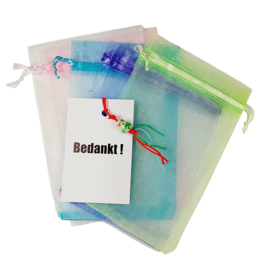 Gelukszakje bedankt - organza zakje met kaartje en klavertje