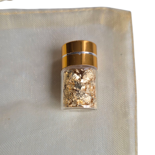 Flesje gouden driehoek met kristal, rozekwarts en amethis