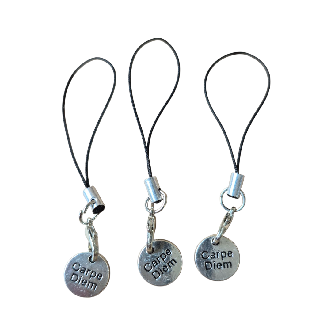 Hangertje met een bedeltje met de tekst 'Carpe Diem' van 1 cm. Carpe diem is een Latijnse uitdrukking die letterlijk "pluk de dag" betekent. Het is een oproep om het leven ten volle te benutten en ervan te genieten. Te leven in het heden, in plaats van je te veel zorgen te maken over de toekomst of vast te houden aan het verleden. Kansen te grijpen die zich vandaag aandienen.