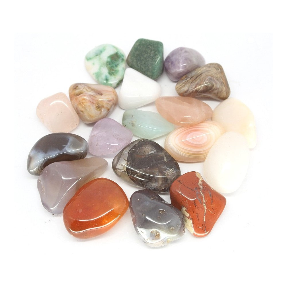Gelukssteen in het formaat 25 - 40 mm in gemixte soorten. U krijgt een mix van verschillende edelstenen, leuk voor de eigen verzameling of om uit te delen.