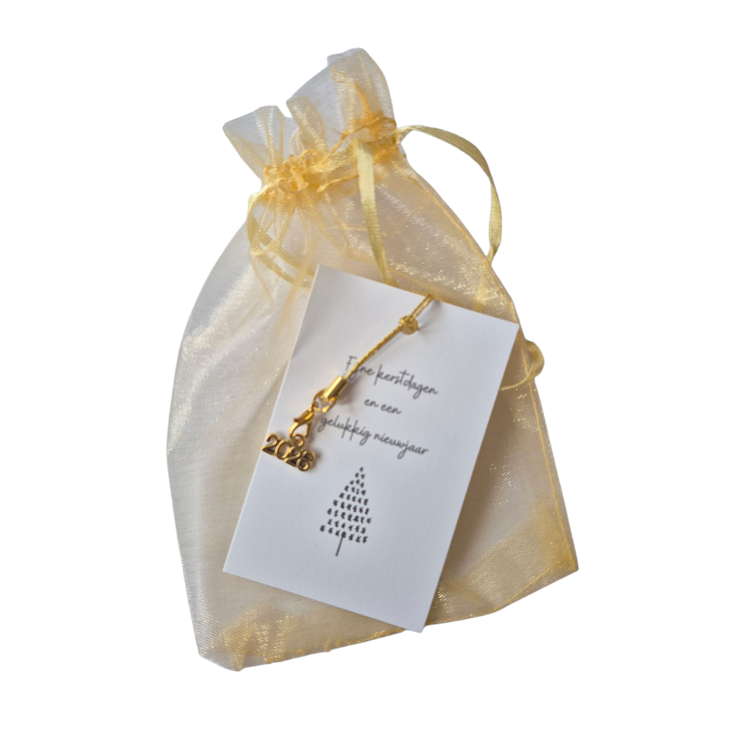 Kerstkaartje voor fijne kerstdagen met bedeltje 2026 en kadozakje